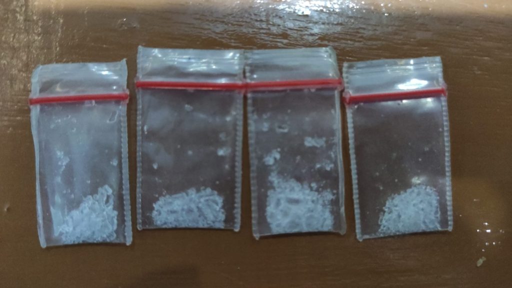 “Jadi saat dilakukan penggeladahan, dan pemeriksaan Tim menemukan barang bukti, 4 Saset plastik klip kecil, berisi butiran kristal bening diduga Narkotika jenis Sabu, Kaca Pyrex, 2 Karet Kaca, dan Jarum,” katanya.