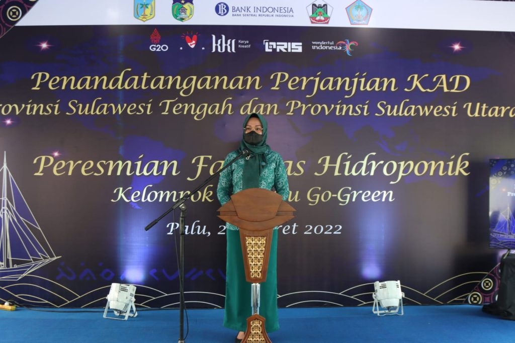 JARAK.ID (PALU) Ketua TP-PKK Kota Palu, Diah Puspita, S.AP yang juga selaku Ketua Dekranasda Kota Palu menghadiri kegiatan sosialisasi ekonomi keuangan inklusif pada Senin, 28 Maret 2022 di Fasilitas Hidroponik Lorong Sintuwi Kel. Lolu Utara, Kec. Palu Timur Kota Palu.
