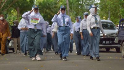 http://Jarak.id [GORONTALO] Tampil dengan kostum layaknya anak-anak SMA atau kostum putih abu-abu , Tim Penggerak PKK Kabupaten Gorontalo ikut serta meriahkan lomba gerak jalan dalam rangka memperingati HUT RI Ke-77 tahun.