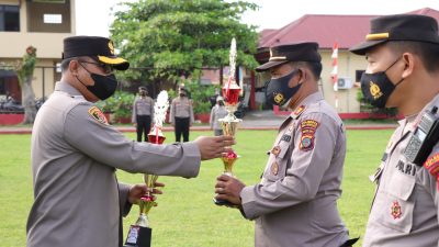http://Jarak.id [Sumut] – Di lapangan hijau Polresta Deliserdang, Wakil Kepala Kepolisian Resor Kota Deli Serdang AKBP Agus Sugiyarso SIK berikan Reward And Punisment kepada Satfung dan polsek jajaran dalam rangka lomba kebersihan lingkungan kerja menyambut HUT Kemerdekaan Republik Indonesia ke 77, Senin Pagi Di lapangan hijau Polresta Deliserdang, (15/08/2022).