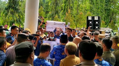 JARAK.ID, [GORONTALO] – Wakil Bupati Gorontalo Hendra Saleh Hemeto, di tolak oleh massa aksi saat menerima unjuk rasa dari Kecamatan Tabongo, yang sedang menuntut infrastruktur jalan di seluruh desa yang ada diwilayah Kecamatan Tabongo agar mendapat perhatian.