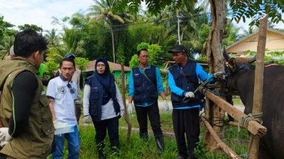 JARAK.ID GORONTALO – Bupati Gorontalo nelson pomalingo meninjau langsung pengecekan kesehatan hewan yang dilakukan oleh dokter hewan mantri hewan dinas peternakan dan kesehatan hewan kabupaten gorontalo, minggu, 16 juni 2024 di kelurahan kayubulan.