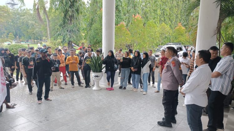 JARAK.ID (GORONTALO) – Asisten Administrasi Umum Sekretaris Daerah Kabupaten Gorontalo, Haris Tome, menyambut kedatangan para aktivis Limboto yang menggelar demonstrasi untuk menyampaikan berbagai tuntutan, Rabu 02/07/2024 di Kantor Bupati Gorontalo.