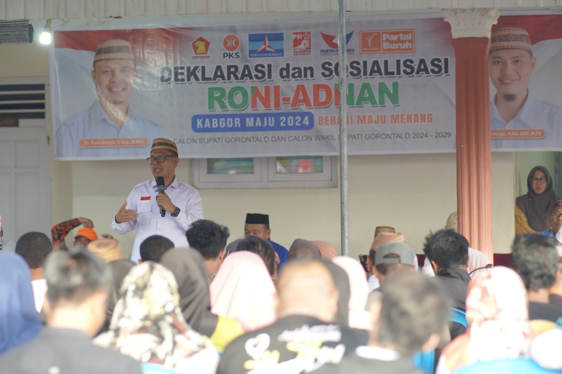 JARAK.ID (GORONTALO) – Bakal Calon Bupati Gorontalo Roni Sampir menyampaikan bahwa janji Pasangan Calon (Paslon) Roni Sampir dan Adnan Entengo semuanya masih bisa masuk akal.