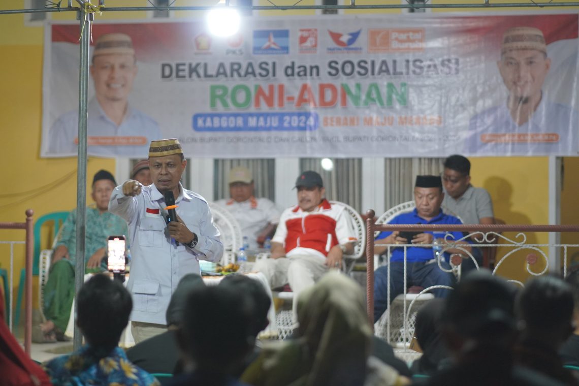 Roni Sampir selaku Mantan Sekda Kabupaten Gorontalo, itu juga menyampaikan bahwa di bidang kesehatan akan diperjuangkan hanya dengan KTP sudah bisa dilayani secara gratis di setiap fasilitas kesehatan.