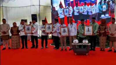 JARAK.ID (GORONTALO) – Seluruh Pasangan Calon calon (Paslon) yang akan bertarung dalam Pemilihan Kepala Daerah (Pilkada) Kabupaten Gorontalo resmi memperoleh nomor urut, Senin (23/09/2024).