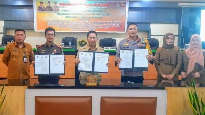 JARAK.ID, GORONTALO_ Guna meningkatkan pengawasan terhadap pelaksanaan pembangunan daerah, Pemerintah Kabupaten Gorontalo bersama Kejaksaan Negeri dan Kepolisian Resort Gorontalo menandatangani Nota Kesepahaman (MoU) terkait Koordinasi Aparat Pengawas Internal Pemerintah (APIP) dengan Aparat Penegak Hukum (APH), Selasa (29/10/2024).