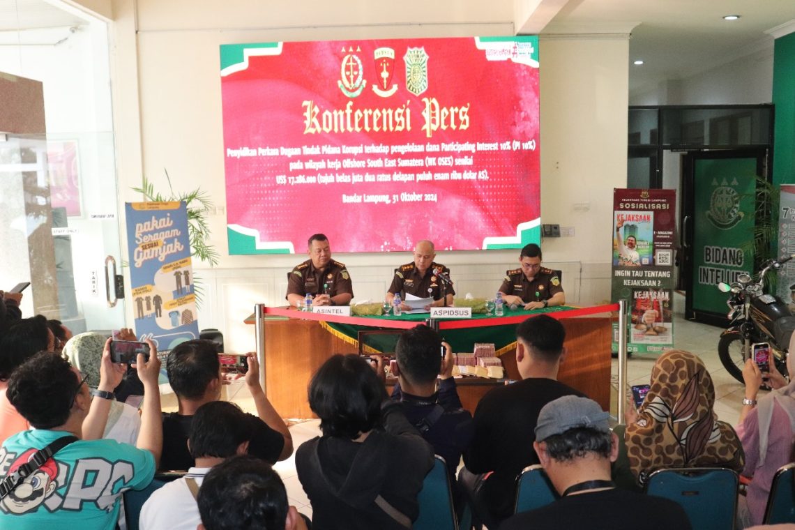 Asisten Pidana Khusus (Aspidsus) Kejati Lampung Armen Wijaya, SH.,MH mengungkapkan jika penggeledahan tersebut, terkait kasus dugaan korupsi pengelolaan dana participacing interest (PI) 10 persen pada wilayah kerja Offshore South East Sumatera (WK OSES) senilai USD 17.286.000 atau 271.557.614.910 (Rp.271,5 Miliar).