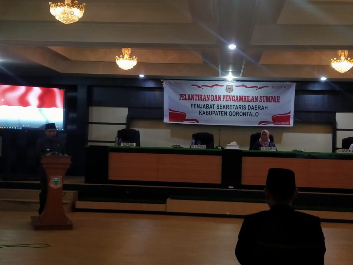Penjabat Bupati Gorontalo Syukri J. Botutihe, melantik Penjabat Sekertaris Daerah Kabupaten Gorontalo Mohamad Trizal Entengo menggantikan Haris Suparto Tome, Jum’at (22/11/2024).