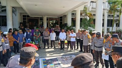 JARAK.ID, GORONTALO__ Bupati Gorontalo H. Sofyan Puhi memimpin apel kesiapan pengamanan (PAM) perayaan ketupat dalam rangka Operasi Kepolisian Terpusat “Ketupat Otanaha 2025”, di halaman Kantor Bupati Gorontalo, Minggu (6/4/2025).