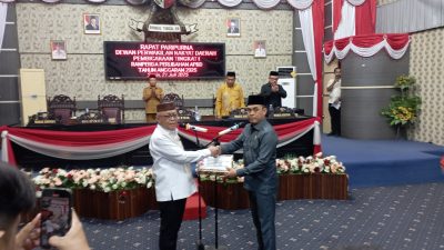 Jarak.id GORONTALO – Bupati Gorontalo Sofyan Puhi bersama Dewan Perwakilan Rakyat Daerah (DPRD) Kabupaten Gorontalo menggelar rapat Paripurna Pembicaraan tingkat I Pembahasan Rancangan Peraturan Daerah (Ranperda) tentang perubahan Anggaran Pendapatan dan Belanja Daerah (APBD), tahun anggaran 2025, senin (21/7/2025).
