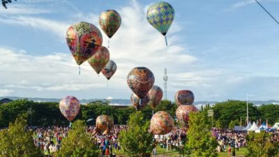 Pemandangan balon udara yang mengudara di atas Limboto menampilkan keindahan khas dan meninggalkan kesan mendalam bagi para penonton.