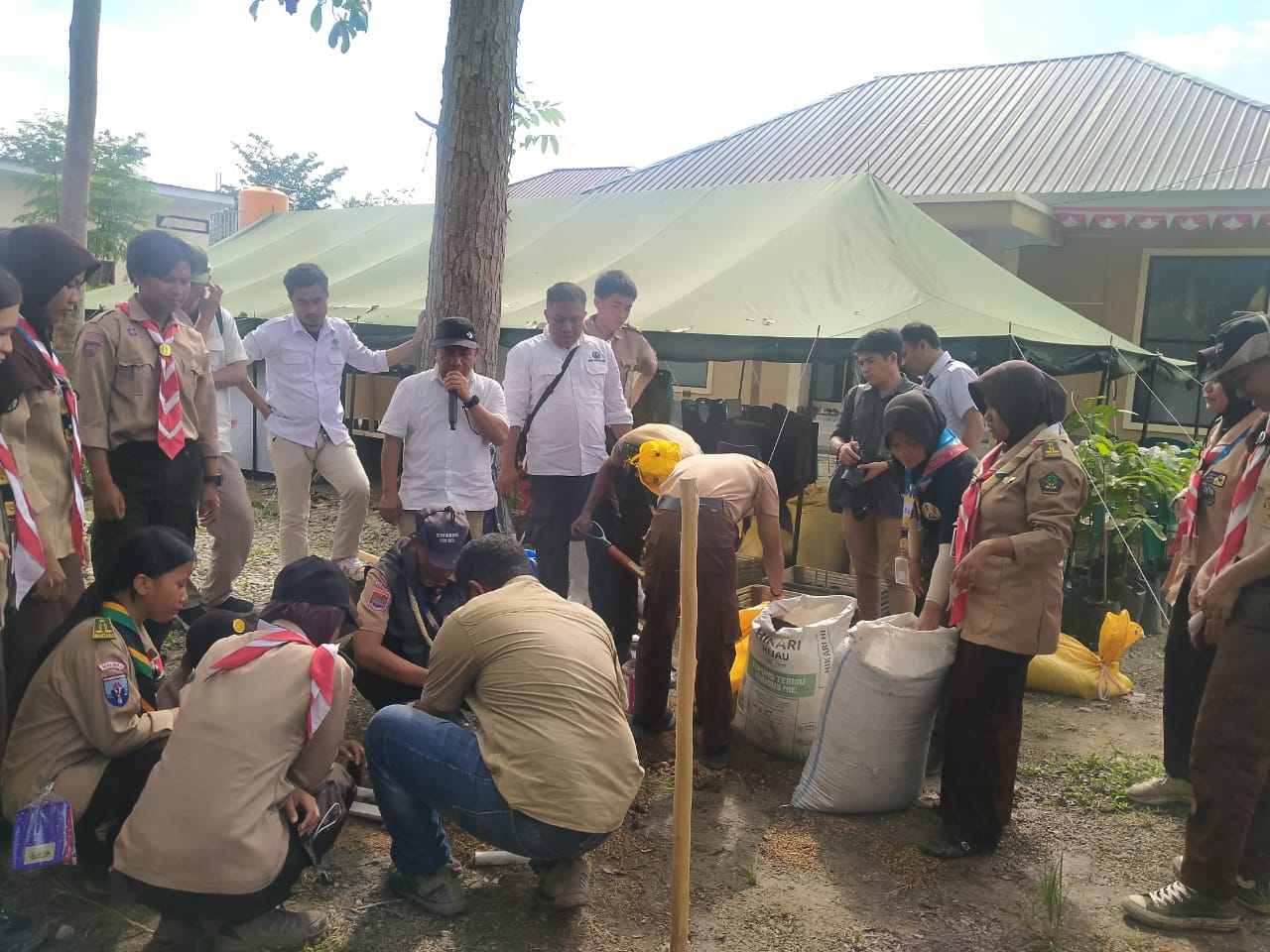 Foto Peserta dari Saka Wanabakti di Kegiatan Peran Saka Nasional tahun 2025 sedang melakukan pendalaman Terkait 4 Krida.