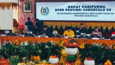 Jarak.id, (Gorontalo) – DPRD Provinsi Gorontalo menggelar Rapat Paripurna ke-64 dalam rangka memperingati Hari Ulang Tahun ke-25 Provinsi Gorontalo, Jumat (5/12/2025), di ruang rapat utama DPRD. Rapat dipimpin Ketua DPRD Idrus M. Thomas Mopili dan dihadiri Gubernur, Wakil Gubernur, unsur Forkopimda, pimpinan daerah, para tokoh, serta undangan lainnya.