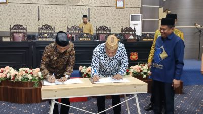 Rapat Paripurna diakhiri dengan penandatanganan Nota Kesepakatan KUA-PPAS oleh Bupati Gorontalo dan Pimpinan DPRD Kabupaten Gorontalo, sebagai simbol komitmen bersama dalam membangun Kabupaten Gorontalo menuju masa depan yang lebih Maju, Gemilang dan sejahtera.