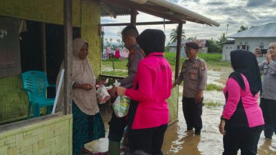 “Kegiatan dalam rangka HUT Bhayangkara ke-79, kami Polsek Bongomeme datang menyambangi dan berbagi sedikit kebahagiaan untuk warga korban banjir yang disebabkan curah hujan tinggi sehingga air sungai meluap dan salah satu tanggul jebol mengakibatkan rumah warga di Desa Duwanga Kecamatan Dungaliyo diterjang banjir,” jelas Ipda Adhiyatma Rizky Arwanto, S.Tr.K.