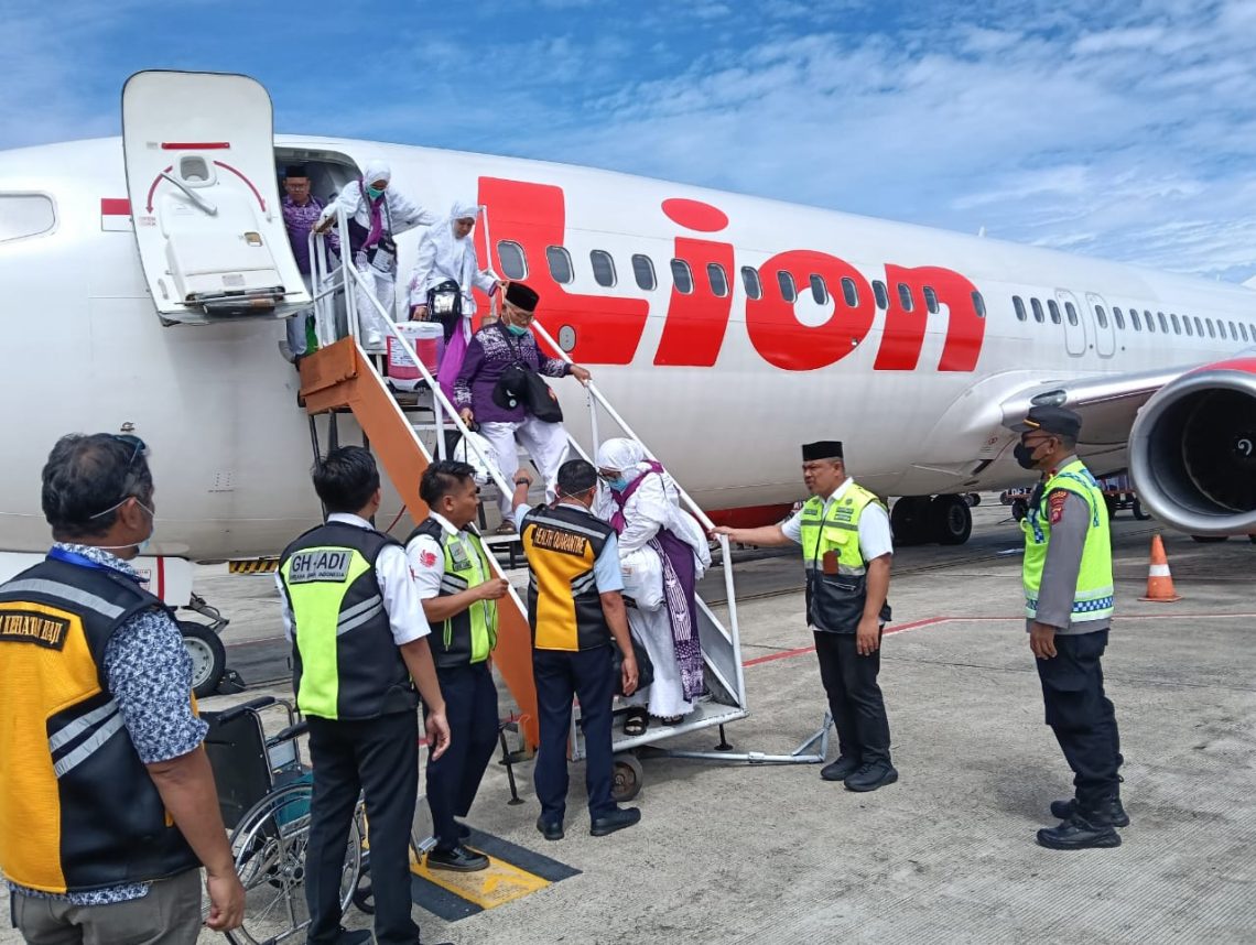 “Kloter 28 Flight Pertama dengan menggunakan pesawat udara Lion Air No. Pnb. JT-3792 tiba pada pukul 12.55 Wita dari Makassar dengan jumlah 212 penumpang jamaah haji,” katanya.