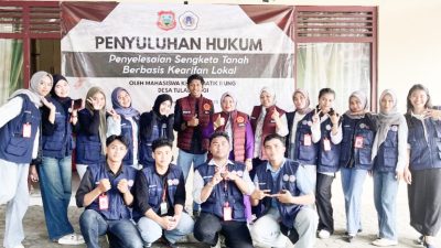 JARAK.ID GORONTALO – Mahasiswa Kuliah Kerja Nyata (KKN) Tematik II Universitas Negeri Gorontalo (UNG) dari Fakultas Hukum menggelar kegiatan penyuluhan hukum dengan tema “Penyelesaian Sengketa Tanah Berbasis Kearifan Lokal” di Balai Desa Tuladenggi, Kecamatan Telaga Biru, Kabupaten Gorontalo, (28/08/2025).