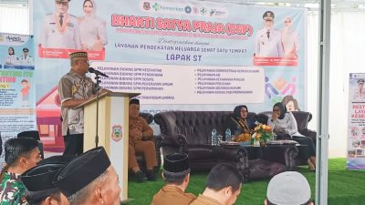 JARAK.ID GORONTALO – Pemerintah Kabupaten (Pemkab) Gorontalo menggelar peluncuran Program Bhakti Satya Praja (BSP) yang dikolaborasikan dengan Layanan Pendekatan Keluarga Satu Tempat (Lapak ST), di Kecamatan Dungaliyo, Selasa (07/10/2025).