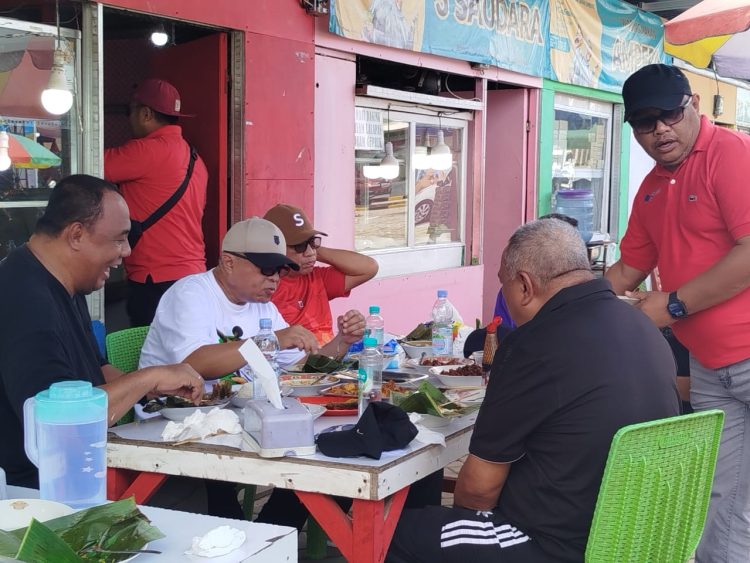 Sate Kenari menjadi menu utama yang disantap oleh Sofyan Puhi dan Tonny Junus, bersama beragam kuliner khas Gorontalo lainnya.